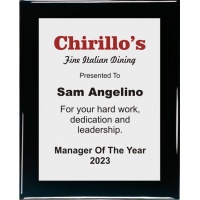 10.5x13 Logo Plaque - Silver or Gold Plate -BLACK PIANO FINISH HIGH GLOSS Plaque - Includes 1 FREE LOGO - PRODUCTION TIME OF 4-7 DAYS - MINIMUM ORDER 6 PLAQUES