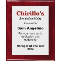 10.5x13 Logo Plaque - Silver or Gold Plate -ROSEWOOD PIANO FINISH HIGH GLOSS Plaque - Includes 1 FREE LOGO - PRODUCTION TIME OF 4-7 DAYS - MINIMUM ORDER OF 6 -