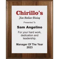 10.5X13 Logo Plaques - Silver Plate - Walnut Style Plaque - PRODUCTION TIME OF 4-7 DAYS - MINIMUM ORDER 8 PLAQUES