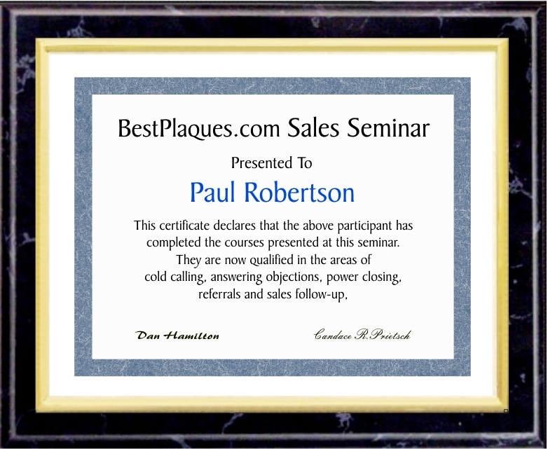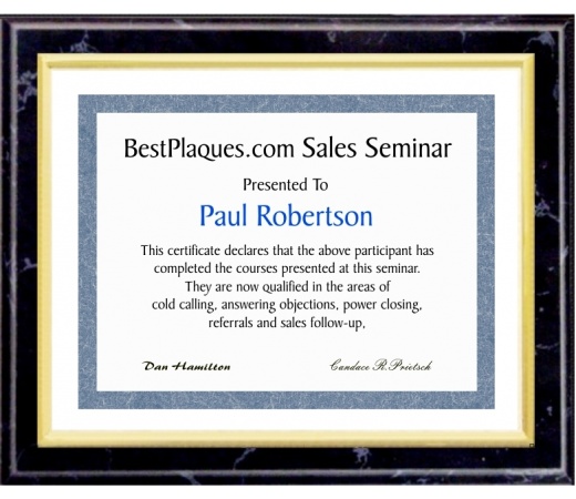 Certificate Slides in from 11" Top Opening